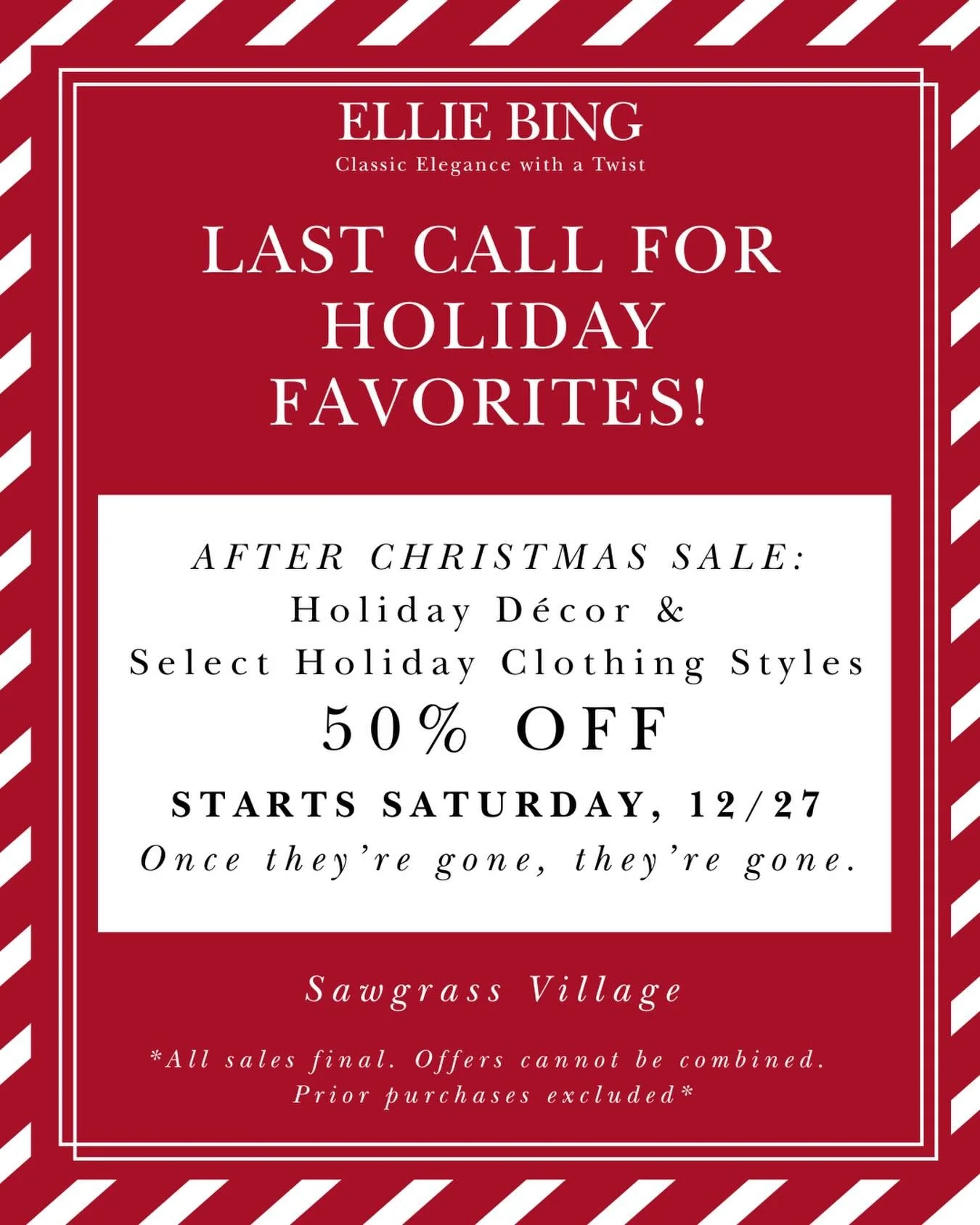 Welcome to Ellie Bing, your destination for curated fashion that blends timeless style with a modern twist. Located in the heart of Sawgrass Village, our boutique offers clothing, jewelry, accessories, and gifts designed to help you express your unique styleβwith ease, confidence, and a splash of unexpected flair.